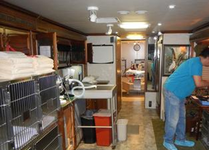 Mobile medical, optometric, psychological, and pet treatment units can be positioned outside the facility.