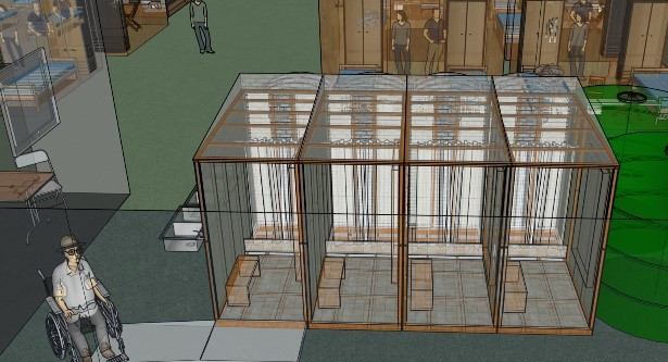 These centralized, emergency, temporary, segregated, and secured shelter facilities are designed to simultaneously stabilize the person(s) in need while relocating them off the street. These individual dwelling units will provide the flexibility that is currently missing to support couples or pets while providing a safe environment to deliver mobilized services and to process client cases.